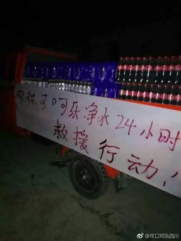 地动发生后,为灾区祈福,康师傅饮用水3408箱,中国可口可乐四川厂第一批告急调配的饮用水已送达九寨沟县人平易近。